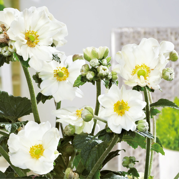 'Andrea Atkinson' is a herbaceous perennial which grows to 1m tall, with lobed basal leaves and white flowers 6cm wide, tinged with pink and green on the outside, and opening in late summer and autumn.