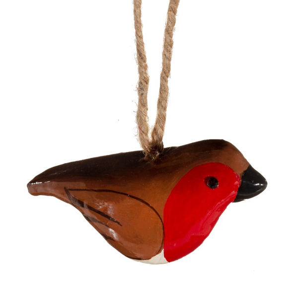 This charming eco-friendly Christmas bauble is an ideal ornament for nature lovers. The brown and red robin bird is a classic Christmas sight and a perfect addition for the festive season. The hanging bauble is made from recycled paper, perfect for those looking to make a more sustainable display at Christmas time.